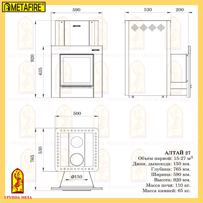 Банная печь АЛТАЙ 27 – отличный вариант для отопления помещения бани или сауны размером от 15 до 27 куб.м. Также она создает приятную атмосферу и в помещениях, смежных с парной – например, в комнате отдыха. Устройство печи гарантирует получение полезного пара, а при установке на трубу дополнительного бака печь может не только отапливать помещение, но и нагревать воду.