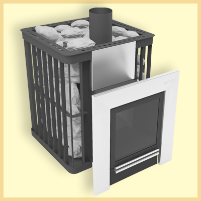 С помощью этой печи-каменки камни прогреваются до температуры в 300 градусов за 1,5-2 часа, образуя мягкую и вполне комфортную атмосферу внутри парной. Сверху печь прикрыта специальным кожухом, обеспечивающим циркуляцию нагретого воздуха по всему помещению парной. Одновременно кожух «отсекает» инфракрасное излучение, производимое раскаленным металлом. Система вторичного дожига помогает топливу прогорать полностью. Это повышает КПД печи и позволяет экономно расходовать дрова. Интенсивность горения дров можно регулировать с помощью зольника.