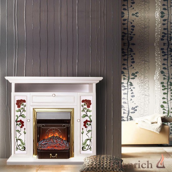 Великолепный, очень парадный, нарядный белый электрокамин – бар с открывающимися дверками и нишей под каминной полкой, декор – английская викторианская керамика (пр-во Англия), покрытие – “белая эмаль”.