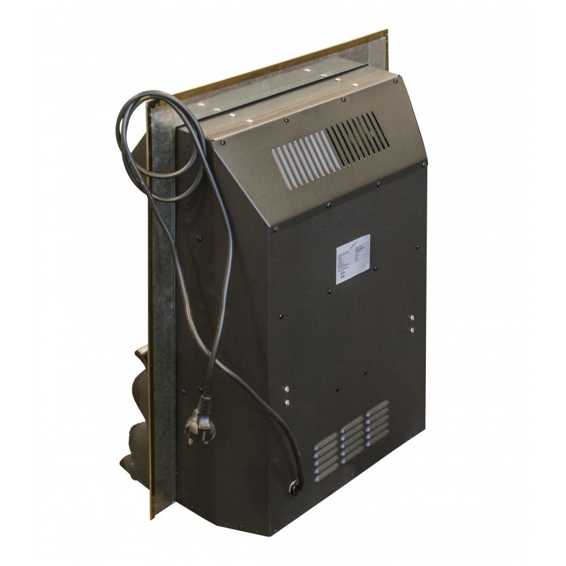 Электрический очаг с звуковым эффектом горения дров (регулируется) предназначен для встраивания в стандартные обрамления. Эффект пламени – сгоревшие дрова. Черная решетка имитирует колосниковую решетку настоящего дровяного камина. Два варианта рамки вокруг очага: черная или золотая. Нагреватель с поддувом спрятан в козырьке очага и обеспечивает обогрев в холодную погоду. Переключатель позволяет включать на полную или половинную мощность.