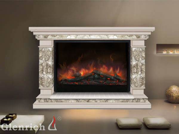 Большой статный электрический камин. Цвет покрытия – беленый дуб. Портал декорирован лепниной ручной работы с художественной росписью. На подиуме под электротопкой – изразец ручной работы. Изготовлен из МДФ со шпоном натурального дуба. С пульта дистанционного управления Вы сможете регулировать мощность обогрева, а также яркость пламени в очаге камина. В декоративном режиме потребляемая мощность всего 80 Вт.