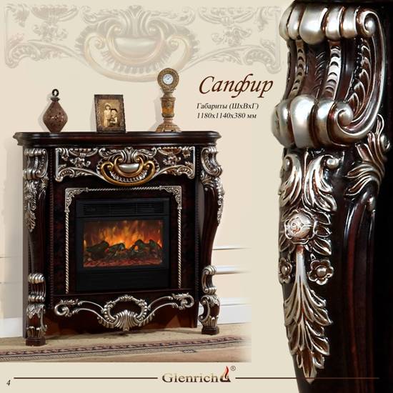 Мощность обогрева электрического камина двухсткпенчатая 1000-2000 Вт. В очаге камина топливо – дрова.