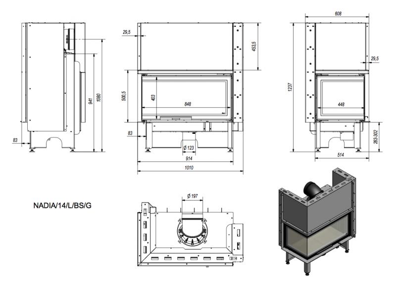 Каминная топка NADIA 14/L/BS/G