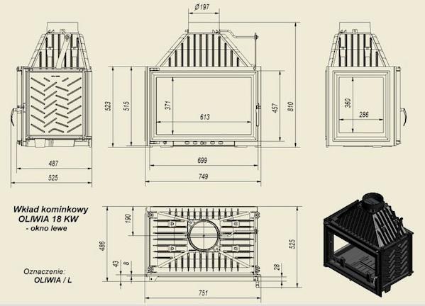 Каминная топка Oliwia польского производителя Kratki. Низкобюджетная модель с минимальным набором стандартных потребительских качеств.