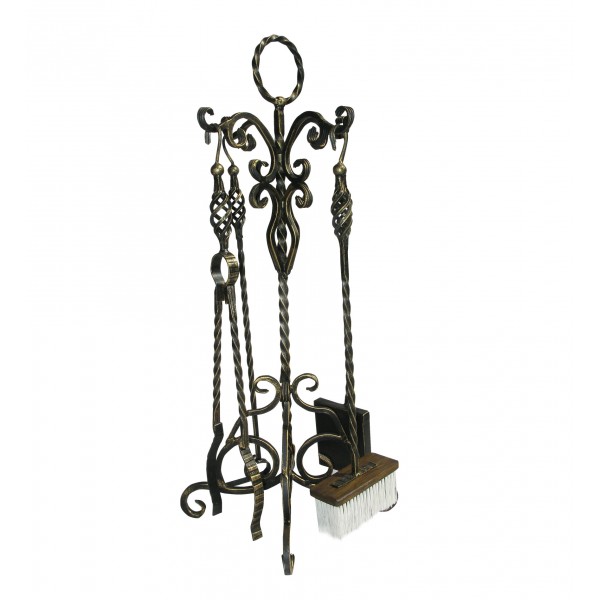 В наборе: совок, метелка,кочерга,щипцы