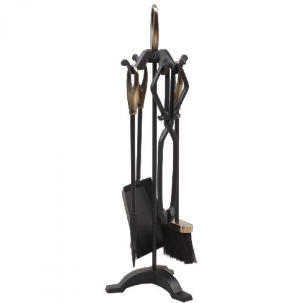 В наборе: кочерга, совок, метелка, каминные щипцы