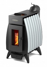 Стильный дизайн позволяет устанавливать печь в самом современном интерьере. Чугунная конфорка с двумя кольцами разных диаметров позволяет готовить пищу на открытом огне в посуде разного размера, загружать топливо сверху и прочищать от сажи верхнюю часть печи. Высокоэффективные щелевые конвекторы защищают от жёсткого инфракрасного излучения и преобразуют 77% полезного тепла в мягкие конвекционные потоки. Вместительный топливник позволяет заполнить печь максимальным количеством дров для длительного непрерывного горения. Большая вертикально-ориентированная дверца топливника позволяет удобно наполнять печь дровами до самого верха. Тонкая регулировка интенсивности горения позволяет бесступенчато выбирать любой режим работы печи. Универсальный выход дымовой трубы позволяет одинаково удобно выводить дымовую трубу и вверх, и назад. Фиксатор положения заслонки дымохода надёжно удерживает её в выбранном Вами положении. Продуманная геометрия топливника исключает скопление непрогоревших углей. Всё топливо постепенно ссыпается на колосник под действием силы тяжести. Сменная защита предохраняет топливник от прогорания в месте скопления горячих углей.