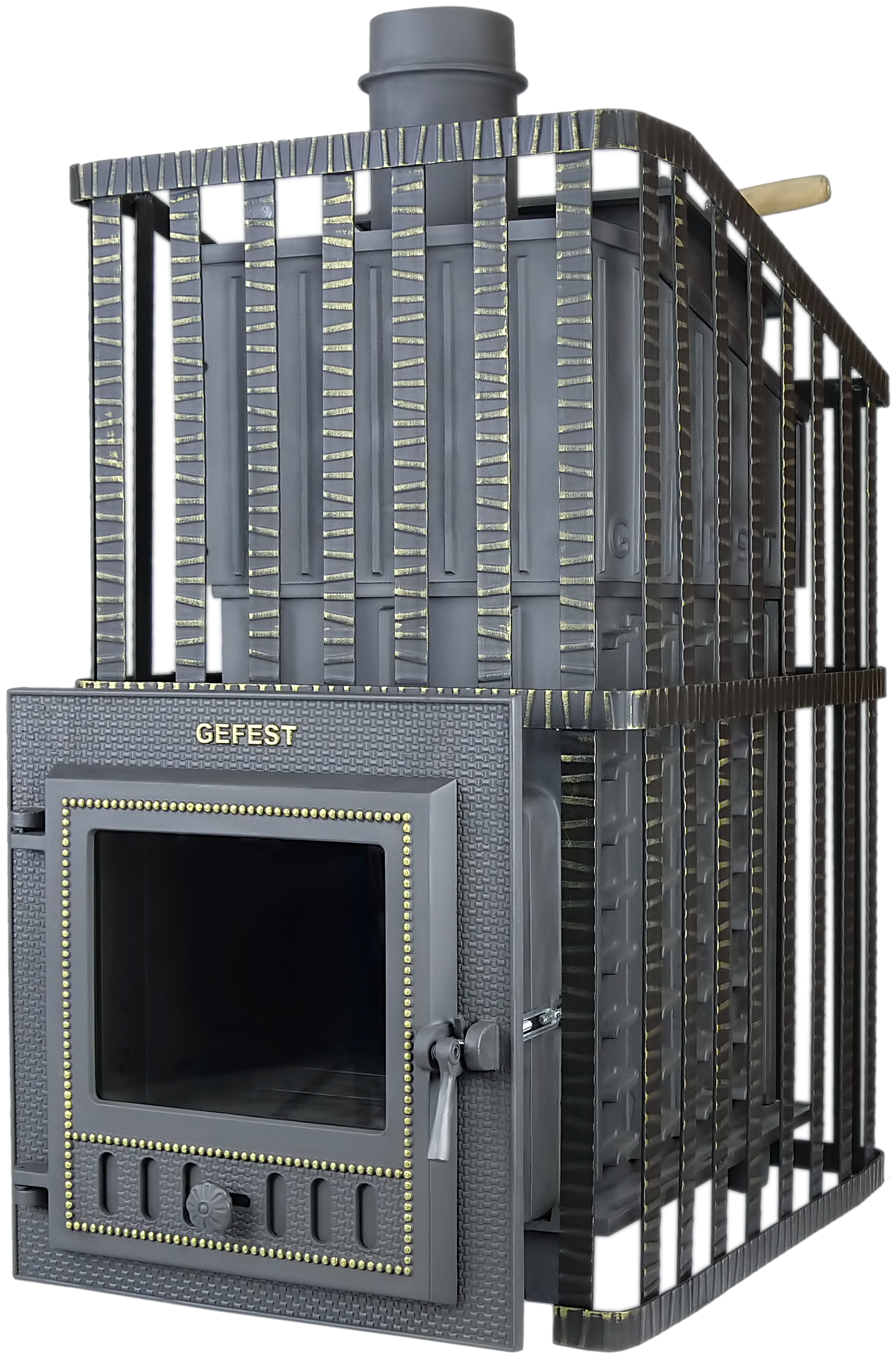 Чугунные банные печи ГЕФЕСТ изготовлены из легированного чугуна с толщиной деталей до 40 мм. Уникальная конструкция печей делает их одними из самых надежных. Одно из преимуществ печей «ГЕФЕСТ Ураган» — возможность модернизации за счет установки каменной облицовки, которая существенно упрощает создание режима «Русская баня». Замена сетки на облицовку проводится крайне быстро, без демонтажа печи и дымоходной системы. В основе «ГЕФЕСТ Ураган» — печь «ГЕФЕСТ Классика» с уникальной каменкой трапецеидальной формы. Особая форма позволяет в кратчайшее время нагреть заряд свыше 500 ⁰С. Чугунные банные печи ГЕФЕСТ — это 2-камерные топочные агрегаты, оборудованные системой дожига пиролизных газов, которая быстро нагревает каменку с зарядом или переводит печь в режим длительного горения. Регулируемая длина топочного тоннеля избавит от проблем при прохождении стены любой толщины. Дверцы печей ГЕФЕСТ оснащены жаростойкими стеклами фирмы SHOTT ROBAX (Германия) и керамическим жаростойким уплотнителем. Срок службы таких печей более 30 лет, но если в далеком будущем печь выйдет из строя, можно заменить в ней недорогостоящую деталь, а не всю печь.