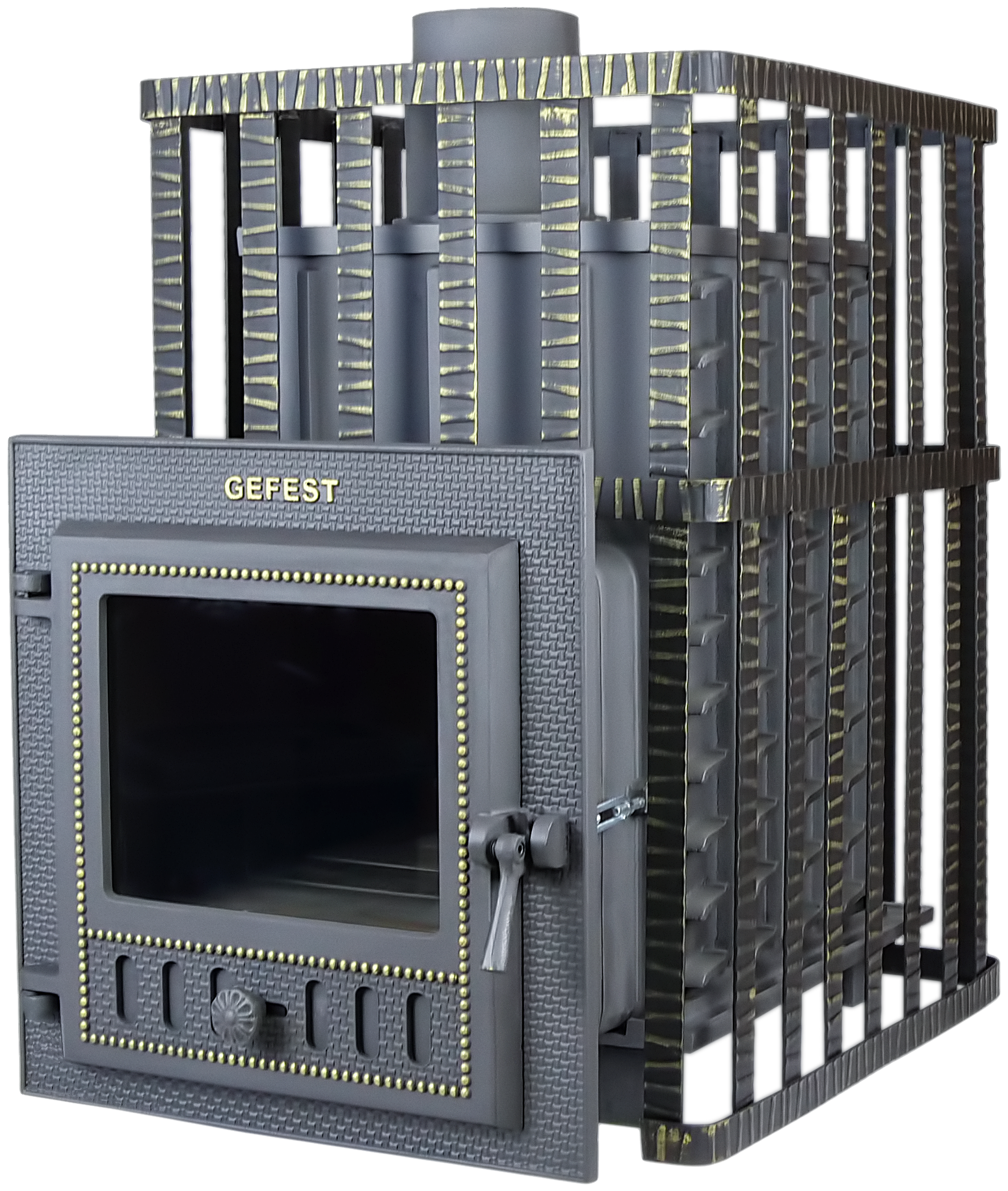 Чугунные банные печи ГЕФЕСТ — это 2-камерные топочные агрегаты, оборудованные системой дожига пиролизных газов, которая быстро нагревает каменку с зарядом или переводит печь в режим длительного горения.