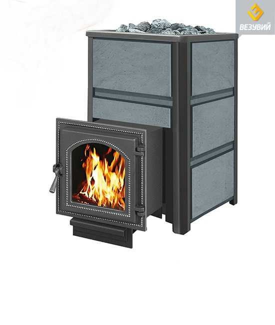 Конвекционно–вентилируемая облицовка, изготовленная из экологически чистой горной породы , который обладает большой теплоёмкостью, что позволяет камню в короткие сроки нагреваться и максимально долго удерживать стабильную температуру в парильном помещении, а также гасить жёсткое инфракрасное излучение Камень  обладает исключительными лечебными свойствами: помогает при головных болях, при нестабильном артериальном давлении, при простудных заболеваниях, воспалительных процессах в почках и пищеварительной системе, снимает повышенную возбудимость и нервозность, сглаживает эмоциональные всплески. Облицовка из натурального камня при нагреве способна аккумулировать тепло, что гарантирует максимально равномерный прогрев и сохранение тепла Банная печь ЛЕГЕНДА 16 (224) укомплектован чугунной каминной, самоохлаждаемой дверцей Везувий 224 с большим жаропрочным стеклом «SHOT ROBAX», с оборудованной системой самоочистки, что позволяет визуально контролировать горение и любоваться видом живого огня. Данная печь рассчитана на объем парильного помещения 8-18 м3.