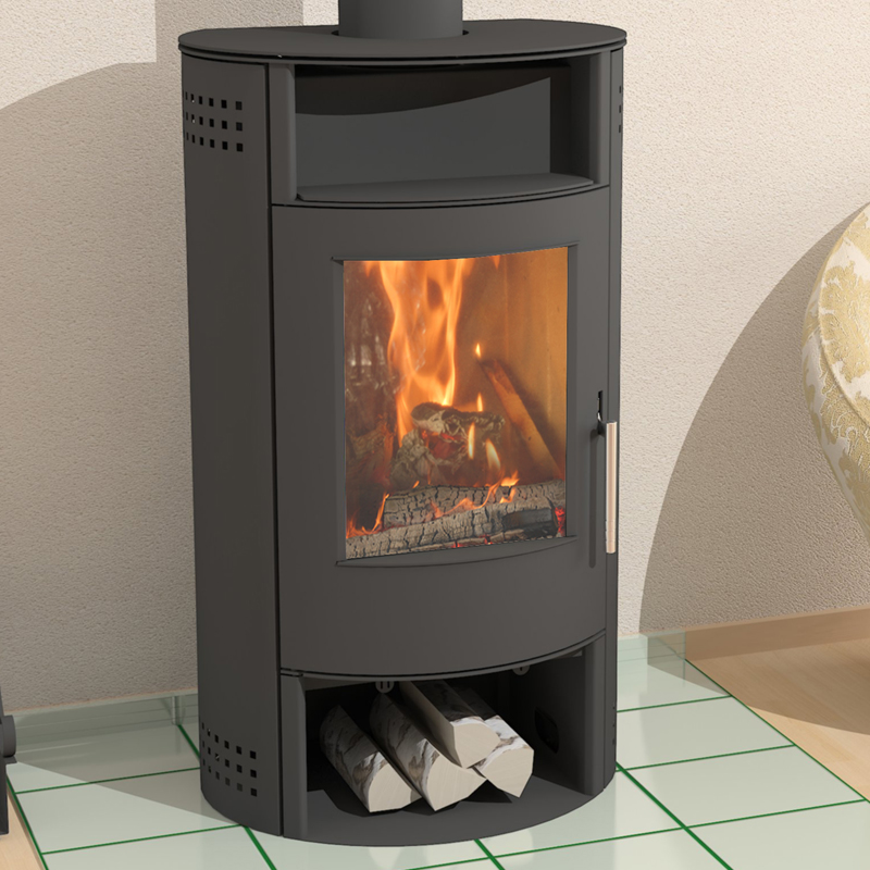 Печь-камин «Байкал» обладает высокой эффективность и надежностью. В печи-камине есть регулируемый дожиг вторичных газов. При топке ручка запирания всегда остается холодной. Новый, современный дизайн: печь-камин «Байкал» с полукруглой дверкой, открывающейся в бок. Особое строение корпуса печи-камина обеспечивает быстрый нагрев помещения за счет конвекционного тепла. Оборудован дверцей с жаропрочным стеклом «Neoceram N-O». Есть система «чистое стекло». Печь-камин оснащен двойным пламегасителем из нержавеющей стали, толщина дополнительного пламегасителя 5 мм. Для уплотнения разъемов используются современные уплотнительные материалы. Особенность данной модели — чугунный патрубок, чугунный колосник. Изготовлен из высококачественной стали. Топка выложена шамотной огнеупорной плиткой. В качестве топлива используются сухие дрова или брикеты бурого угля. Категорически запрещается применение каменного угля и его производных. Быстрый нагрев воздуха в помещении (через 5–20 минут). Конвекционное тепло до 70%. Режим долгого горения позволяет поддерживать тепло в течение 6–8 часов. Есть ниша для разогрева пищи и вместительная ниша для дров. Печи изготовлены с применением импортных комплектующих в соответствии с немецкими технологическими стандартами, адаптированы к климатическим условиям России.