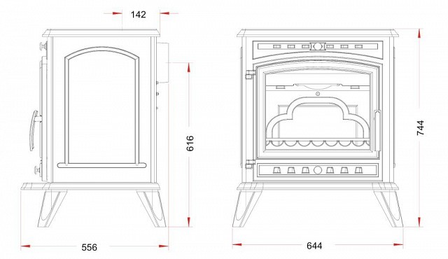 - Дымоходная труба может быть подключена в два возможных выхода (вверху и сзади).
