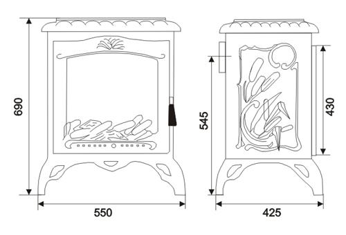 • Имеется ограничитель, способствующий избеганию касания раскалённых дров поверхности стекла;