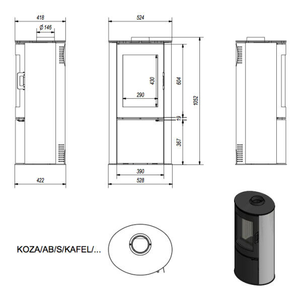 В печи используется тройная система распределения воздуха для горения: один поток воздуха традиционно подводится в топку через зольник, вторичный поток воздуха поступает через отверстия в задней стенке топки, третий поток воздуха обеспечивает воздушную завесу между стеклом и пламенем, чем достигается эффект “чистого стекла”.