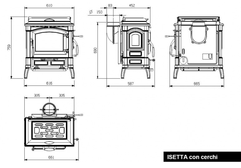 - Печь Isotta Con Cerchi оборудована варочной поверхностью. С помощью ее Вы всегда сможете разогреть еду, чайник, или же приготовить вкусный завтрак, обед, или ужин, тем самым радуя своих домашних вкусно-приготовленной едой.