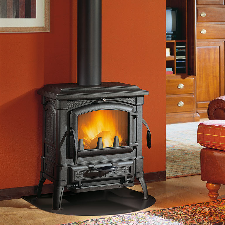 Печь-камин La Nordica Isotta Evo – это отопительная печь итальянского производства “La Nordica”, которая идеально подойдет для обогрева жилых и дачных домиков или станет практичным дополнением к Вашему домашнему очагу. Печь-камин La Nordica Isotta Evo изготовлена из литого чугуна наивысшего класса. Чугун известен своей прочностью, благодаря которой внешний вид изделия останется первозданным в течение многих лет. А высокий уровень теплоотдачи поможет быстро отопить помещение. Дизайн печи весьма практичен, конструкция печи стоит на коротких ножках, что придает ей большей привлекательности. Печь-камин довольно компактна, и ее легко можно установить в любое место. Топка печи-камина данной модели увеличенного размера, а корпус немного больше чем в модели Isotta, поэтому она имеет большую мощность. Модель La Nordica Isotta Evo имеет достаточно высокую мощность (9 кВт), и она способна обеспечить быстрым теплом помещения с объемом 180 м. куб. КПД топки достигает 83%. Двойные стенки печи-камина помогут чугунной топке отдавать тепло быстрее, благодаря чему практически сразу после растопки Вы почувствуете первое тепло. Печь-камин La Nordica Isotta Evo оснащена большой панорамной дверцей. Прозрачная вставка дверцы изготовлена из стеклокерамики высокого качества, которая способна выдержать температуру до 750 градусов. С помощью очистительной системы “чистое стекло” дверца печи останется чистой надолго. Конструкция изделия данной модели предусматривает боковую дверцу для загрузки дров и систему очистки колосниковой решетки. Печь-камин Isotta Evo также имеет функцию вторичного дожига, благодаря которой летучие газы, которые образовались во время горения, будут перерабатываться в камере вторичного сгорания. Подключить дымоход можно с помощью специальных отверстий вверху или сзади печи-камина.