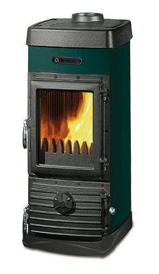Печь-камин La Nordica Junior небольшая по габаритам и сочетает в себе приятный дизайн и инновационную конструкцию. В качестве материала печи La Nordica Junior выступают сталь и чугун, способные выдерживать перепады температуры и существенно увеличить срок годности. Внешне печь-камин La Nordica Junior выполнена в зелёном цвете, а элементы чугуна покрашены матовой чёрной краской. В комплектацию идут латунные ручки. Топочная камера закрытого типа. Распространение тепла в трёх направлениях. Колосниковая решётка с ручкой, позволяющей проводить встряхивание снаружи. Удобная загрузка топлива сквозь обширную дверцу, оснащённую панорамным стеклом; стеклокерамика выдерживает воздействие температуры, диапазон которой не превосходит 750 градусов. Дверца панорамного типа способствует проведению качественного визуального контроля над процессом горения. Печь-камин La Nordica Junior станет хорошей помощницей во время приготовления и разогрева пищи, для этого она оснащена варочной поверхностью из чугуна. Площадь обогреваемого помещения составляет 50 м2, что соответствует разеваемой номинальной мощности в 5 кВт. Эксплуатация печи-камина связана с использованием дров, ежечасное потребление топлива не превышает 1,5 килограмма. Устройство печи-камина La Nordica Junior позволяет эффективно сократить расходы на дрова и получить высокое значение КПД в 75% (вторичный дожиг газов и горение топлива на колосниковой решётке). После завершения процесса горения изделие остаётся горячим ещё долгое время. Занимает агрегат любое положение в отапливаемом помещении, подключение к дымоходу находится сверху печи-камина La Nordica Junior. Умеренная цветовая гамма отопительного прибора служит для его универсального использования в различных интерьерах частных домов и загородных построек.