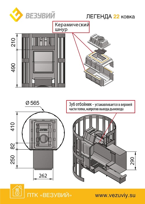 Преимущество печи «Легенда» в том, что топка состоит из трёх элементов, толщиной не менее 12 мм. На стыке между ними используется керамический шнур с рабочей температурой 1200 градусов. То есть топка печи абсолютно герметична! Для фиксации деталей между собой применяется болтовое соединение, что даёт 100% гарантию безопасности при эксплуатации. Печи отлиты из специального сплава чугуна, которые выдерживают максимальные температурные перепады, т.е. даже при попадании большого количества воды чугунная печь сохраняет свою исключительную целостность и не лопается в отличие от изделий других производителей.