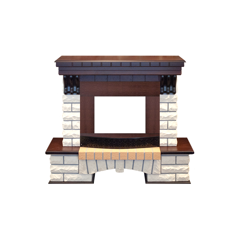 Портал в стиле Country. Изготовлен из искусственного камня и шпонированного МДФ. Камень белого цвета. Предназначен для популярных очагов 25 дюймов.