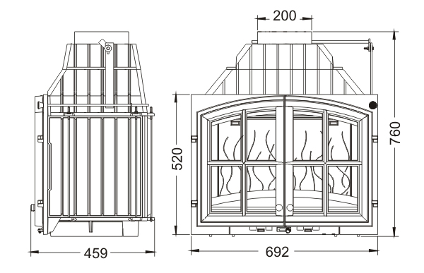 | Диаметр дымохода | 200 мм |