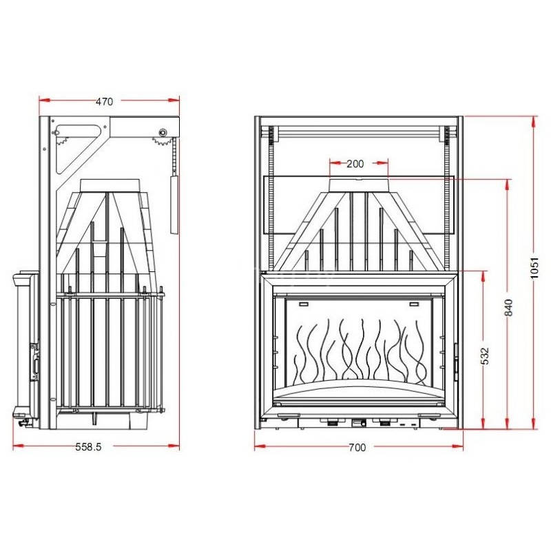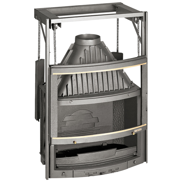 Изящная и компактная топка. Обладает отличным дизайном и рабочими характеристиками. С этой моделью вы легко сможете любоваться открытым огнем. Подъемный механизм просто скроет рамку со стеклом под декоративным коробом камина. Ее мощности достаточно, чтобы отопить внушительного размера гостиную и выпустить часть тепла в смежные с камином помещения.