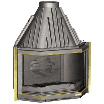 Большая топка с отличными характеристиками. Призматическое стекло дает прекрасную обзорность огня. По бокам расположены стильные латунированные накладки.