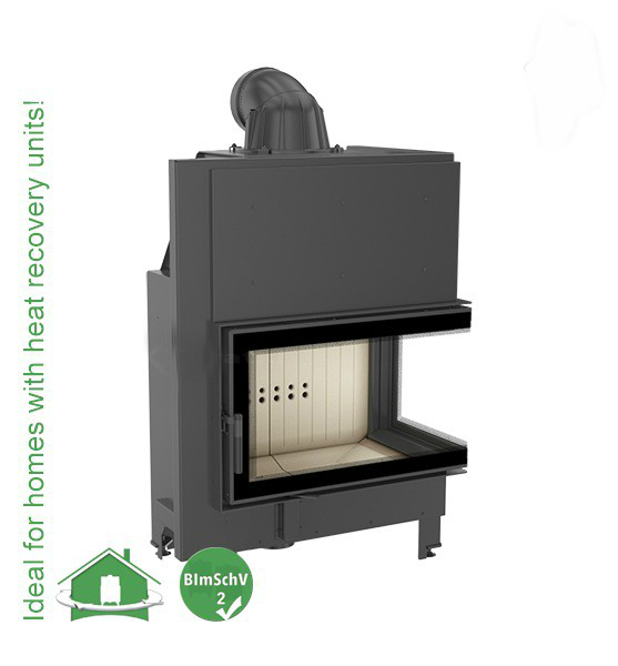 Модель стальной топки, предназначенная для монтажа камина угловой конструкции. Стекло меньшего размера расположено с правой стороны, следовательно такую топку удобно использовать для монтажа камина в левый угол. В базовой комплектации топка оснащена одинарным декорированным стеклом (glass system). Большая камера сгорания футерована Acumotte. Подовое(бесколосниковое) горение. Топка имеет возможность комплектации теплоаккумулирующими дисками и в то же время любого из элементов дымохода (Диам. 200 мм). Поворотный двухсоставной патрубок дымохода с возможностью регулировки на 360 градусов.