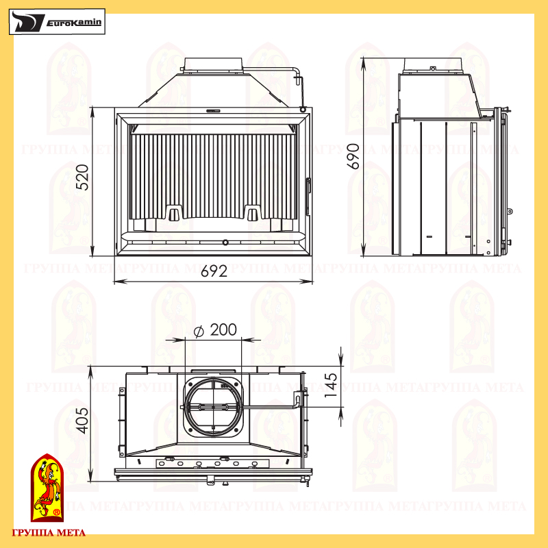 | Диаметр дымохода | 200 мм |
