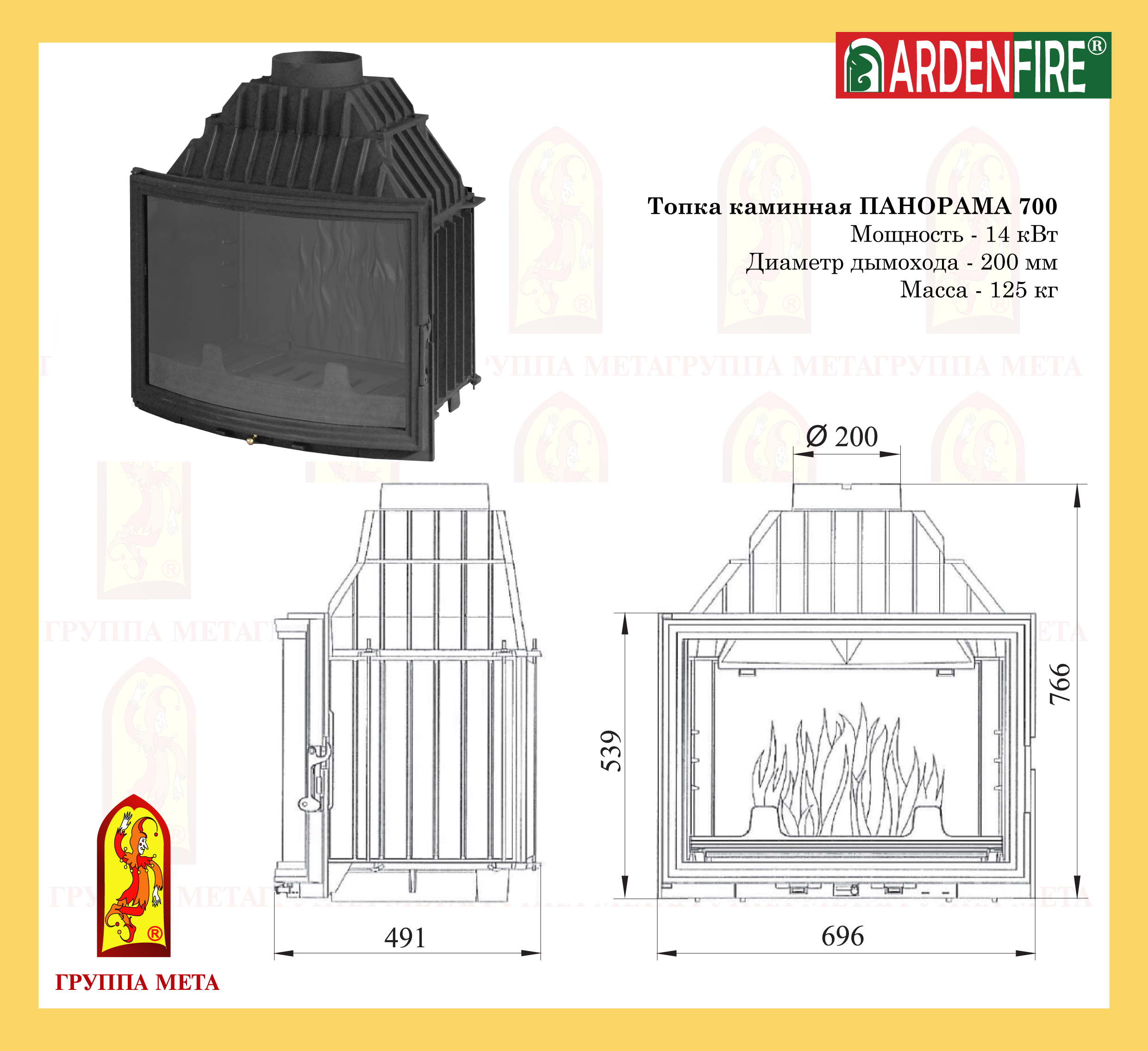 Каминная топка Панорама 700 представляет отопительное оборудование, произведенное компанией МЕТА (Россия). В данном изделии сочетаются отличные технические характеристики и превосходный дизайн. Одним из основных преимущественных черт прибора марки Панорама 700 является оснащение конструкции панорамным стеклом. Такой тип стекла в дверце топочного отделения дает в отличный обзор на внутреннее отделение топки, благодаря чему наслаждаться пылающим пламенем можно в полном объеме.