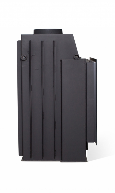 6. В качестве опции вместе с топкой может быть поставлен конвекционный кожух. С помощью кожуха и воздуховодов можно развести теплый воздух в соседние помещения и отопить небольшой дом площадью до 150 м2.
