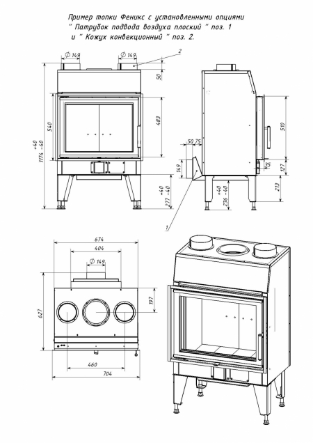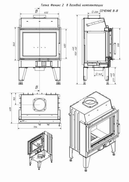 Топка устанавливается на пол на ножках высотой 280 мм, расстояние от отметки низа дверки до отметки низа чистого пола – 440-480 мм) Наиболее комфортная высота для наблюдением за огнем в топке.