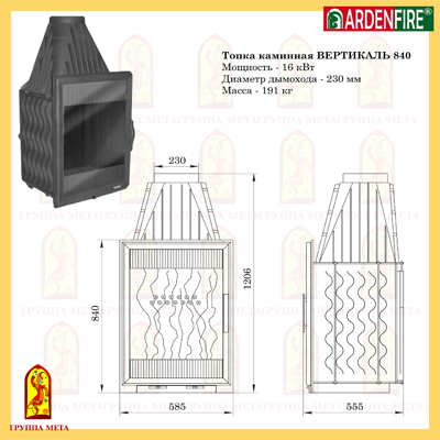 Топка ВЕРТИКАЛЬ 840